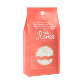 Riso Roma Classico Dai chicchi lunghi, corposi e di grande consistenza, che assorbono perfettamente qualsiasi condimento, pur restando compatti e ben divisi. È indicato per risotti, risi al sugo e sformati perché la sua alta percentuale di amido permette di ottenere un risotto ben mantecato e giustamente morbido. |